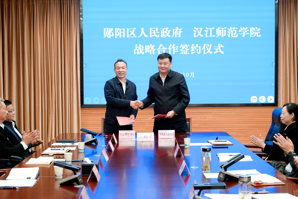 10月14日上午,郧阳区人民政府——汉江师范学院战略合作协议签约仪式在郧阳区政府举行。校党委书记付永昌,郧阳区委副书记、区长刘伟华,校党委副书记周明华,郧阳区委常委、常务副区长、组织部长刘群出席签约仪式。
